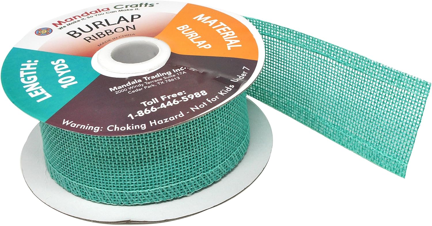 - Bulk Burlap Ribbon Turquoise Linen Ribbon: Each continuous 1.5 in colored burlap roll is 10 yard long. With two turquoise burlap rolls, total 20 yards long, the burlap ribbon bulk pack is handy to decorate trees and mason jars or hang pictures.