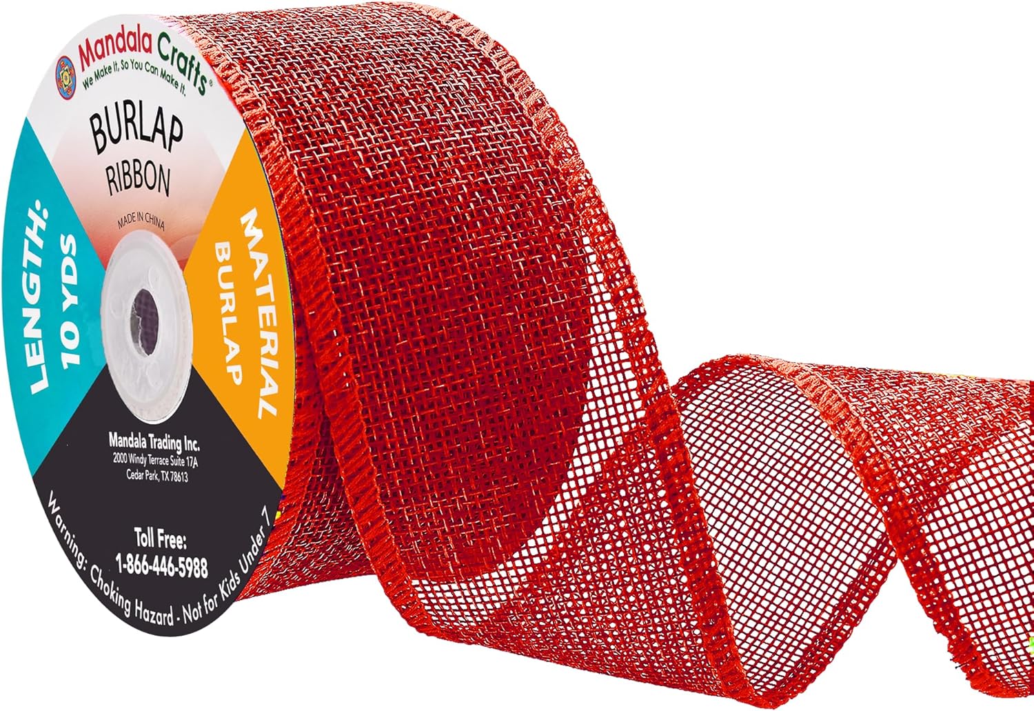 Mandala Crafts Red Burlap Ribbon 2 Inches Wide Jute Ribbons for Crafts - 20 Yds Roll Rustic Burlap Wrap Trim Ribbons for Wreaths Bows Wedding Party Decoration