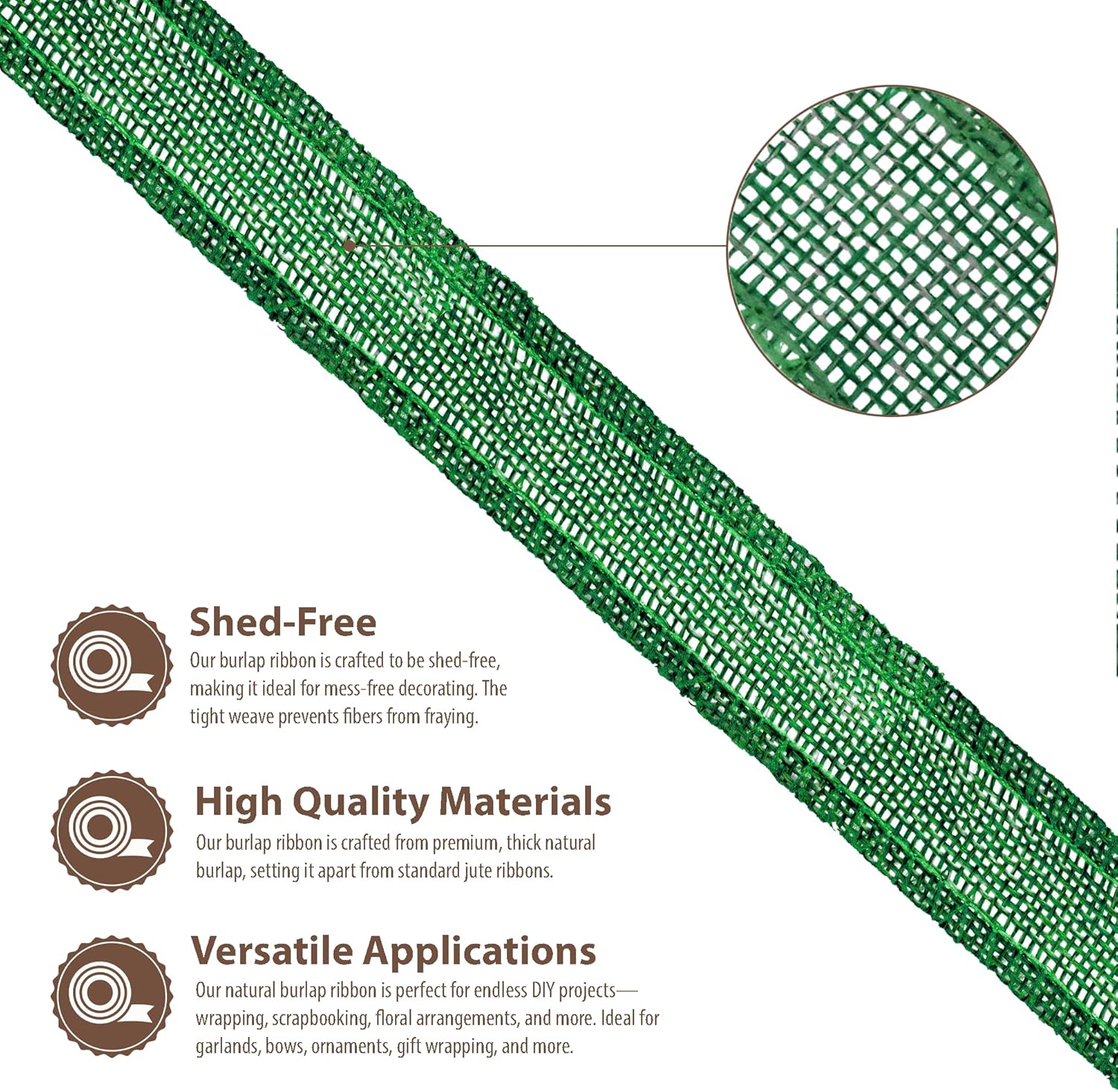 - Burlap Green Ribbons for Wrapping, DIY, Scrapbooking, & Floral Arrangement: The rustic ribbon is the ideal-colored burlap fabric for garlands, bows, flower, cards ornaments & curtains tiebacks and gift wrapping ribbon for boxes & baskets.