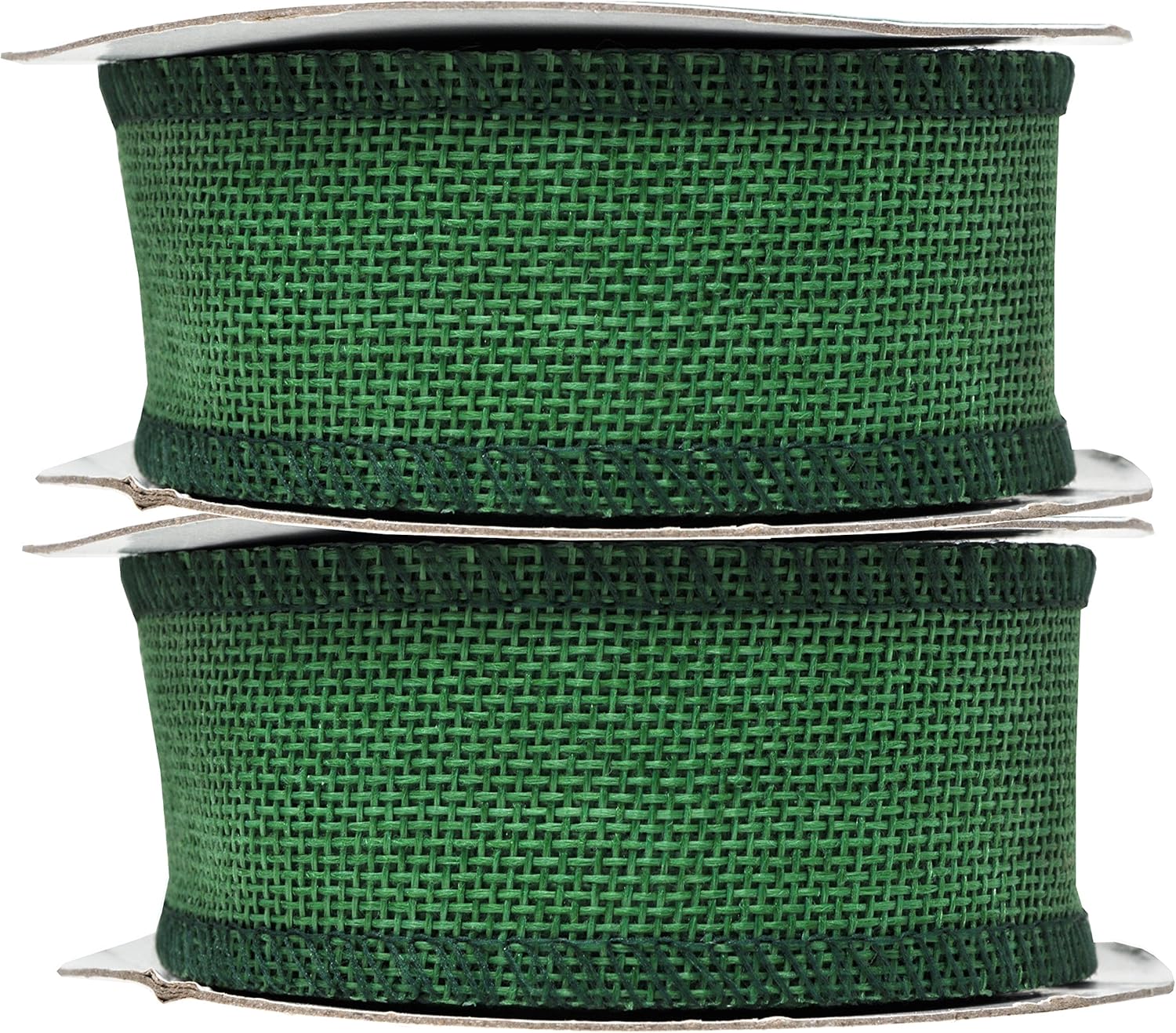 - Bulk Burlap Ribbon Green Linen Ribbon: Each continuous 1.5 in colored burlap roll is 10 yard long. With two green burlap rolls, total 20 yards long, the burlap ribbon bulk pack is handy to decorate trees and mason jars or hang pictures.
