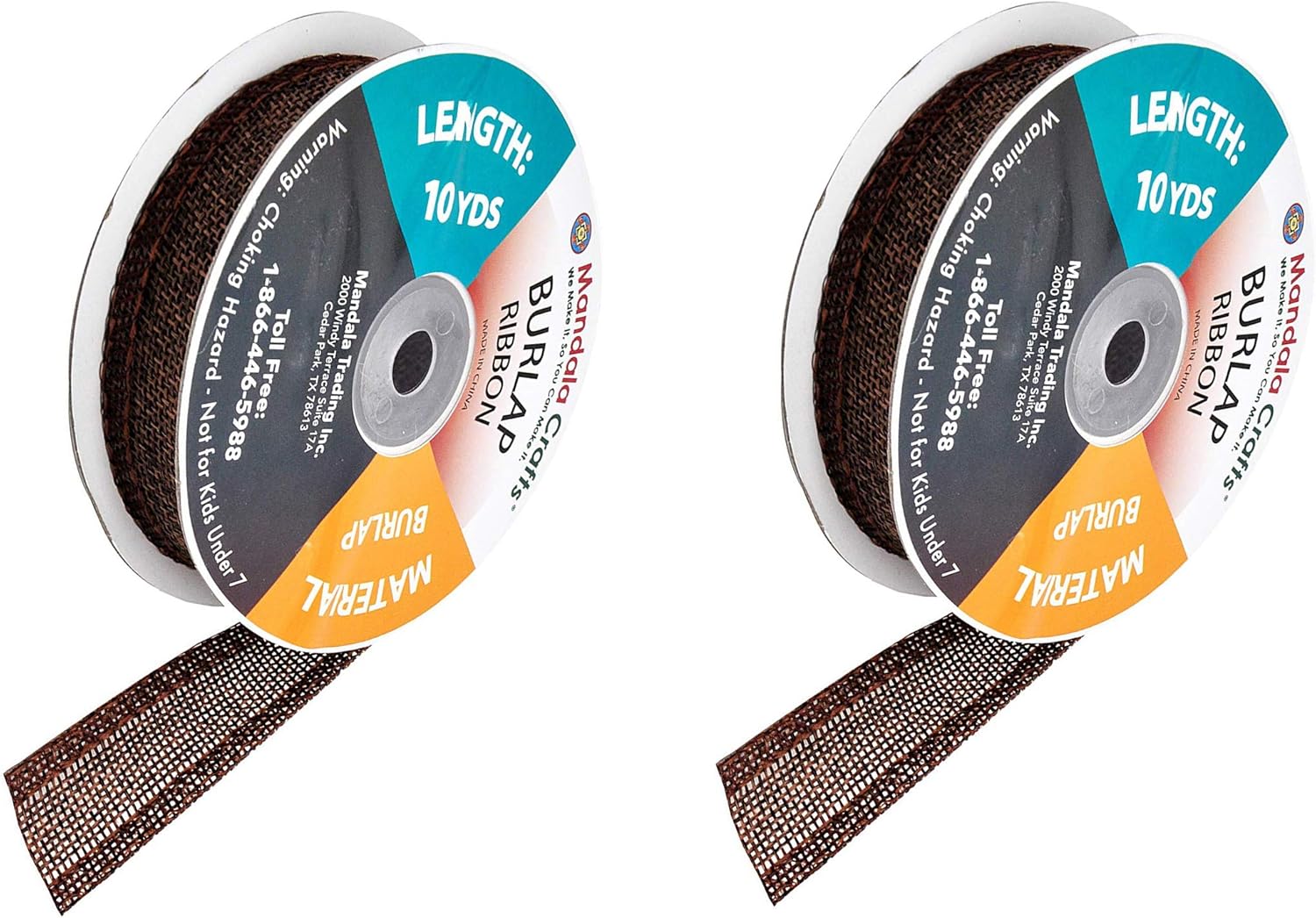 - Bulk Burlap Ribbon Brown Linen Ribbon: Each continuous 1 in colored burlap roll is 10 yard long. With two brown burlap rolls, total 20 yards long, the burlap ribbon bulk pack is handy to decorate trees and mason jars or hang pictures.