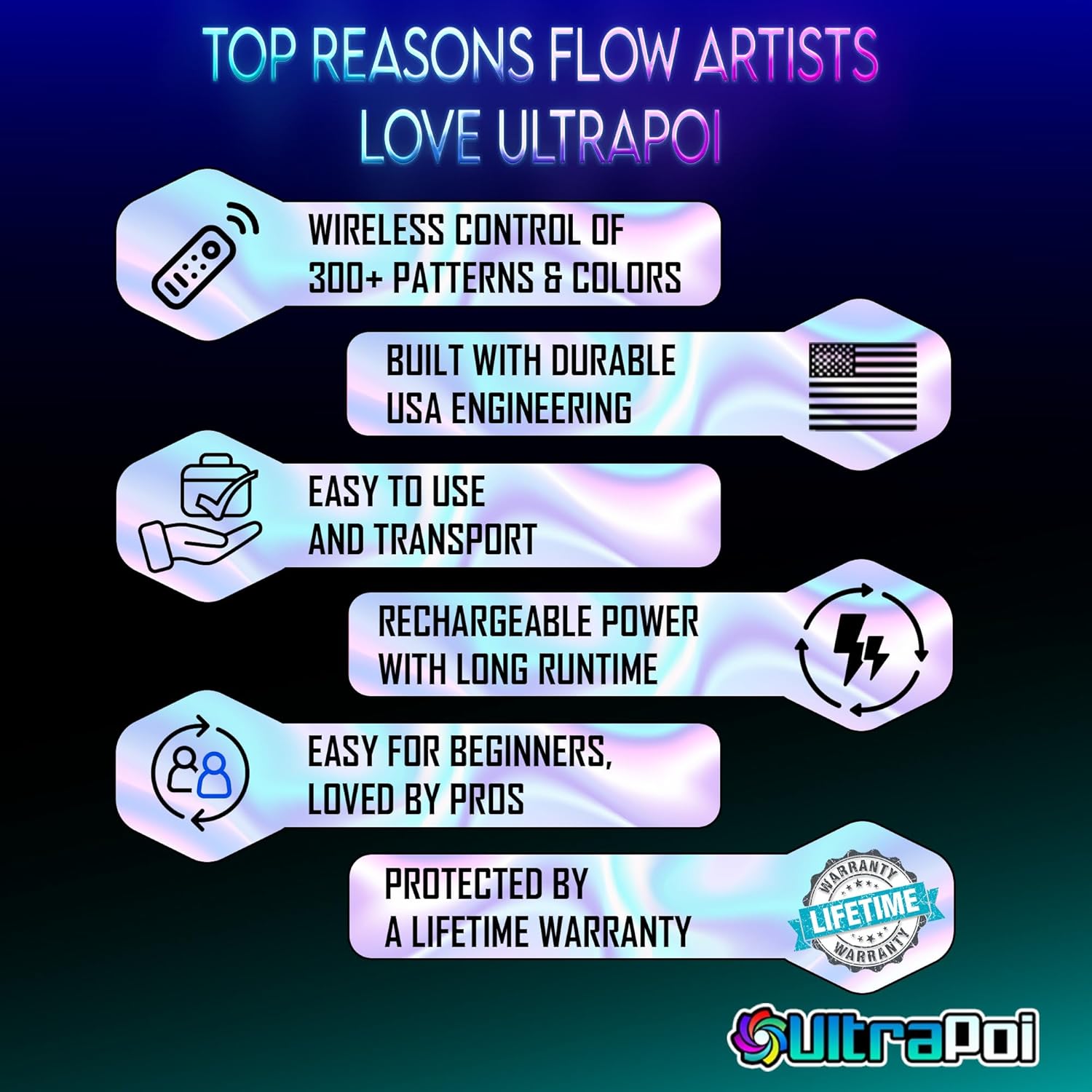 UltraHoop Remote LED Hoop - Wireless Control 60 Color Changing LED Lights w/ 300+ Modes & Patterns - Rechargeable Battery, HDPE Collapsible, Advanced to Beginner Hoola Hoops - 32” x 3/4" OD - UltraPoi