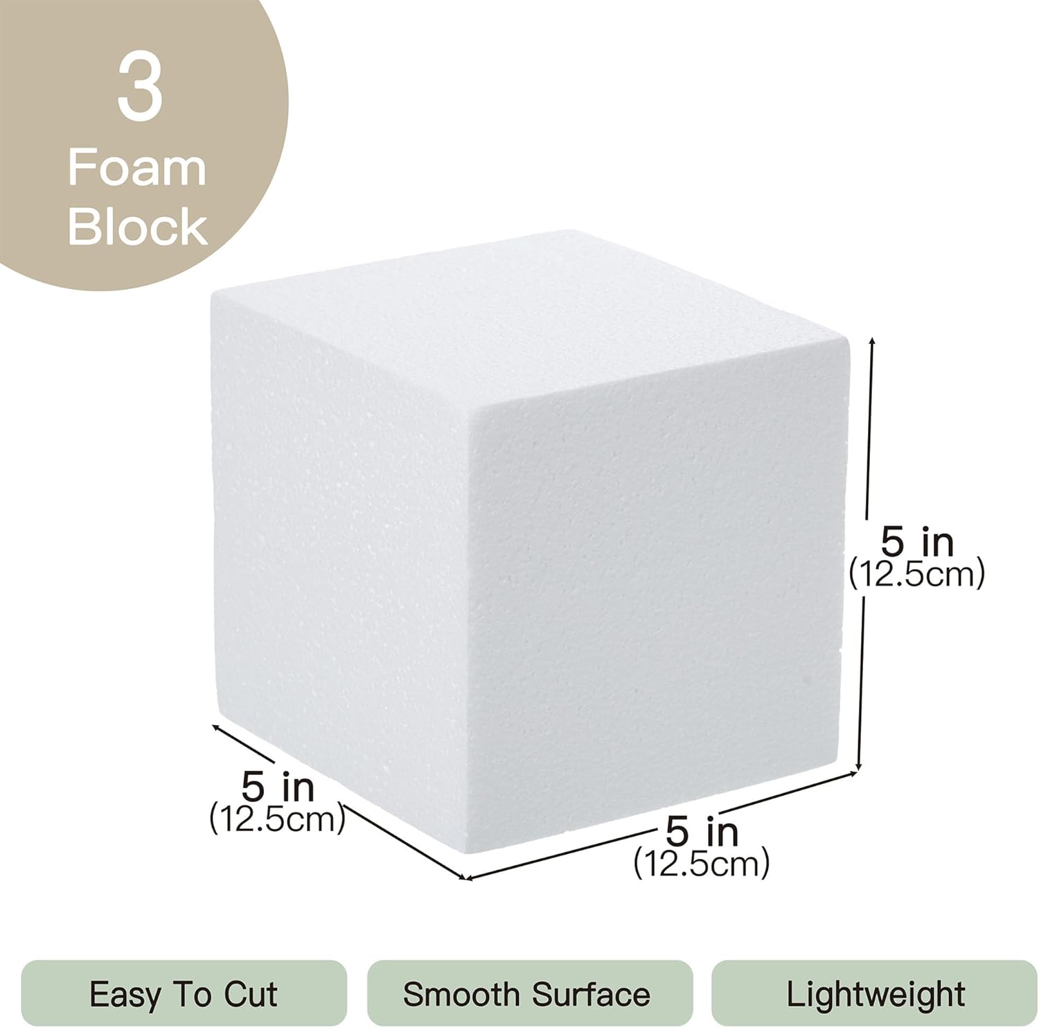 - Size:3pcs 5x5x5inch diameter polystyrene craft foam cubes blocks work with flowers,paint,rope,twine,ribbon,button,sequin,lace and embellishments create handmade craft projects