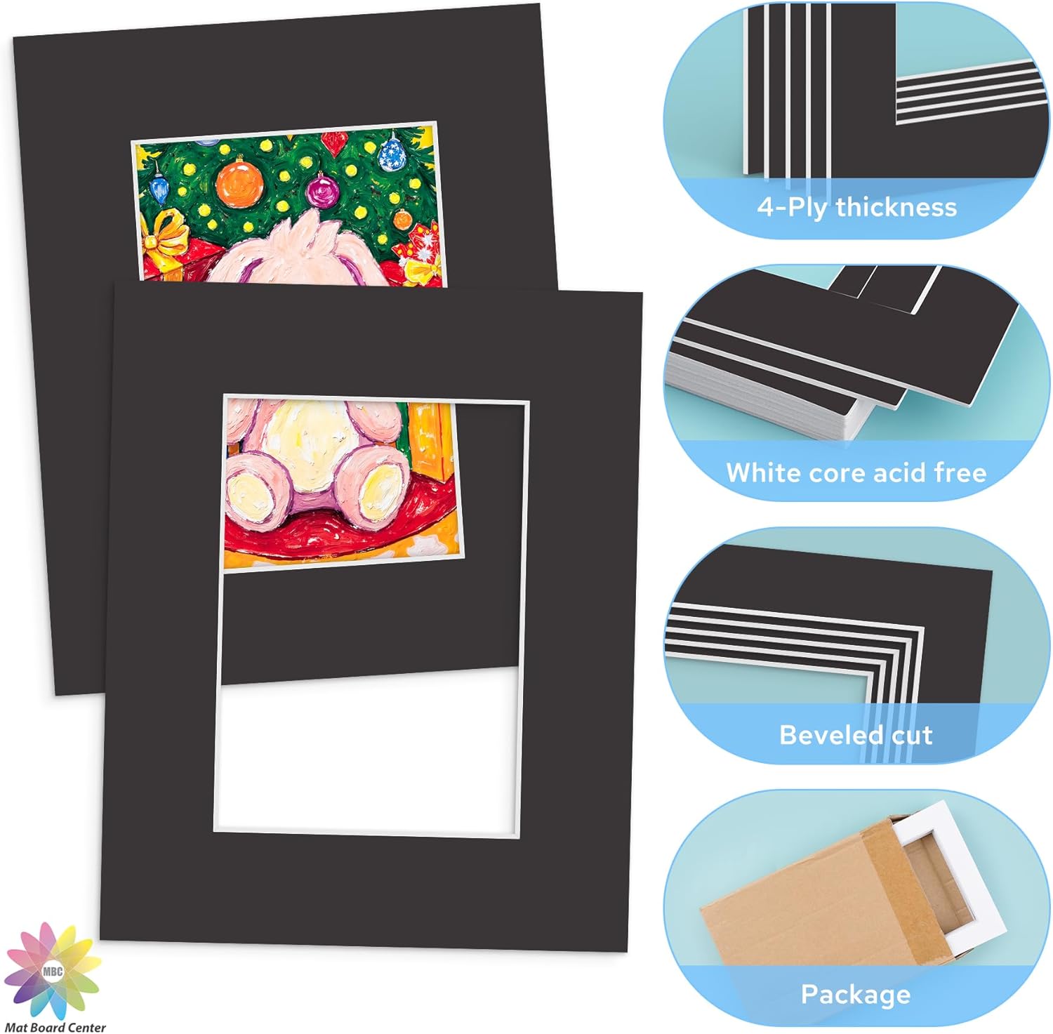 - Pack of 12 Acid-Free Custom Cut Black Color Photo Matboards