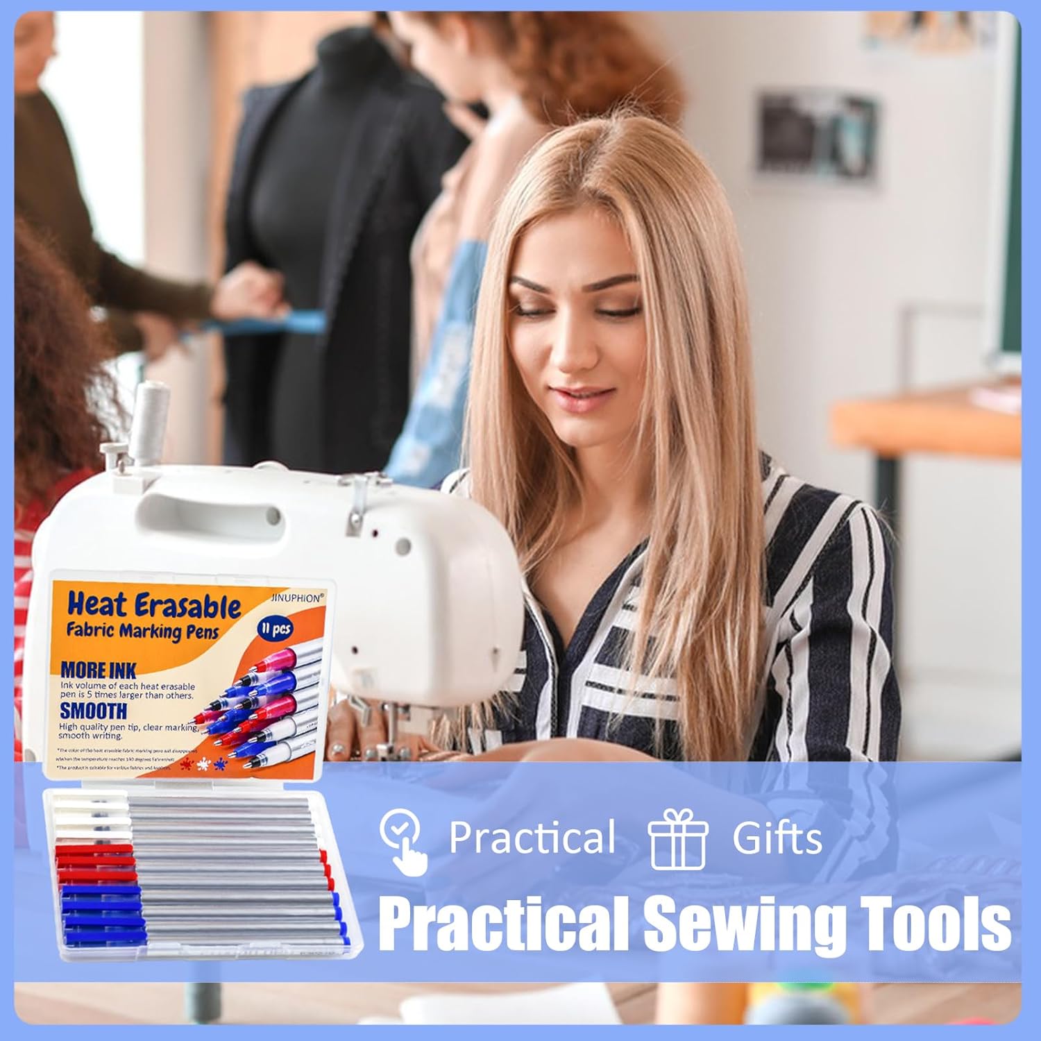 Heat Erasable Fabric Marking Pens Set | 11Pcs 3 Colors | Increase Ink Capacity & Writes Smooth | Sewing Quilting Supplies, Sewing Gifts