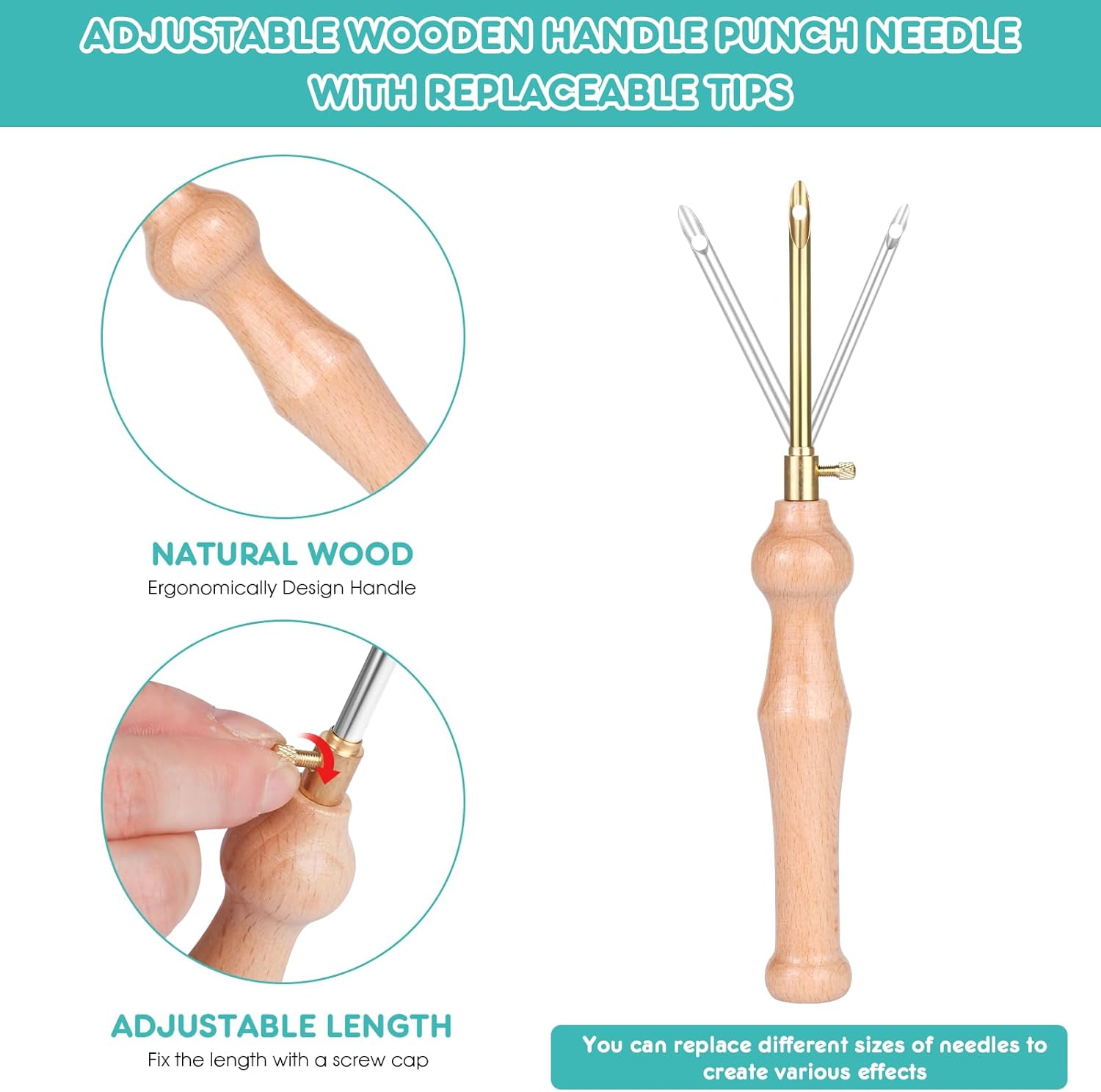 - 【Package Include】What you receive is 6 different wooden handle punch needle,4pcs threaders(2pcs flower shape),1pcs marking pen,9pcs big eyes needle,1pcs scissors and 1 Storage box.The diameters of these needles (from left to right) is: 5mm, 3.5mm, 3.5mm, 5mm, 3.5mm, tri-head needle (2.5mm, 3mm, 5mm).Various shapes and sizes meet different creative needs.