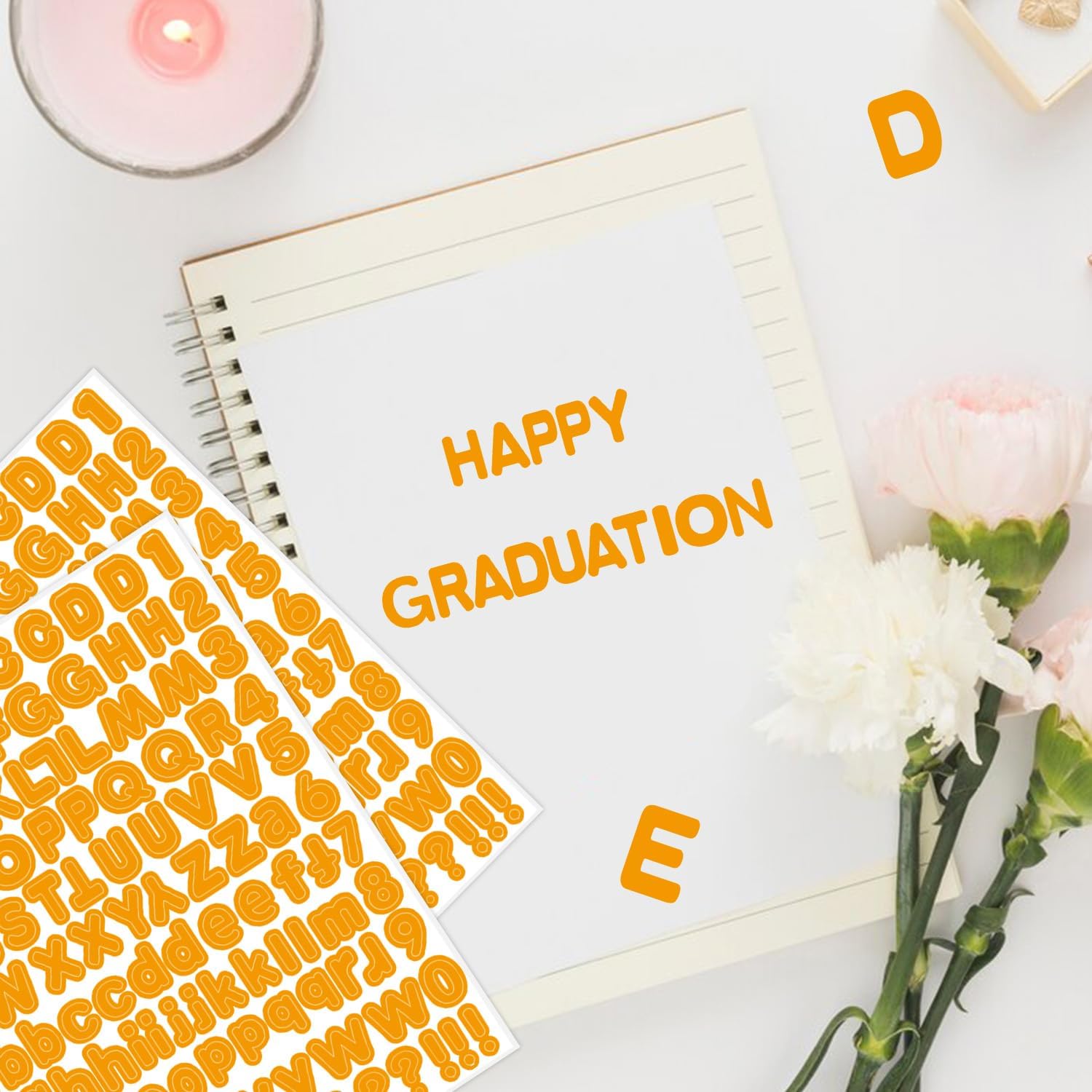 Letter Stickers,1/2 inch 10 Sheets Orange Alphabet Sticker,Self Adhesive Vinyl Letter Stickers Mailbox Numbers,Self Adhesive Letters Stickers for Bulletin Boards Classroom Home Decor