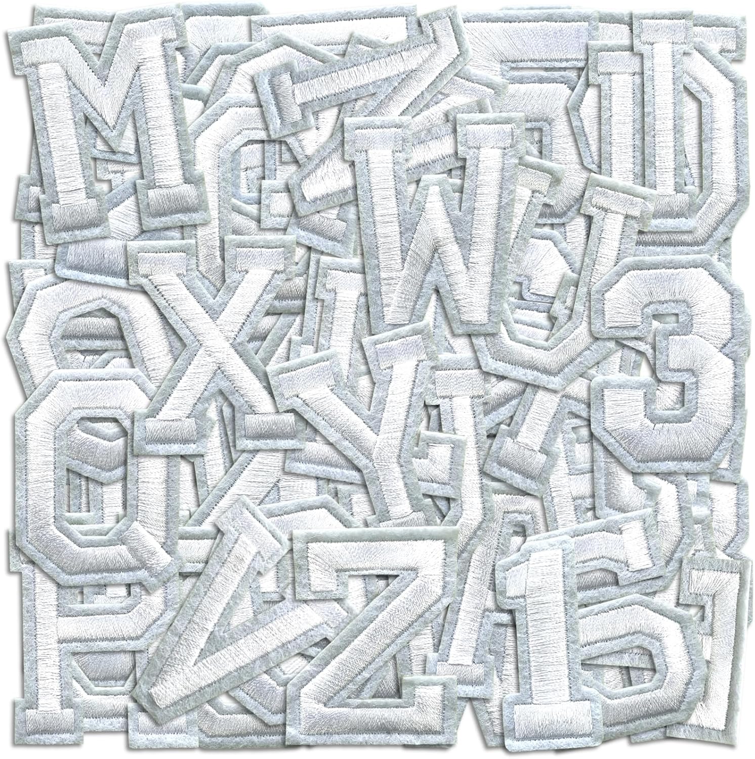 Letter and Number Iron On Patches, A-Z Alphabet and Numbers 0-9 Embroidery Applique Patch, DIY Decorative Heat Press Patches for Clothing Jeans Jackets Backpacks Hats (White 72 Pcs)
