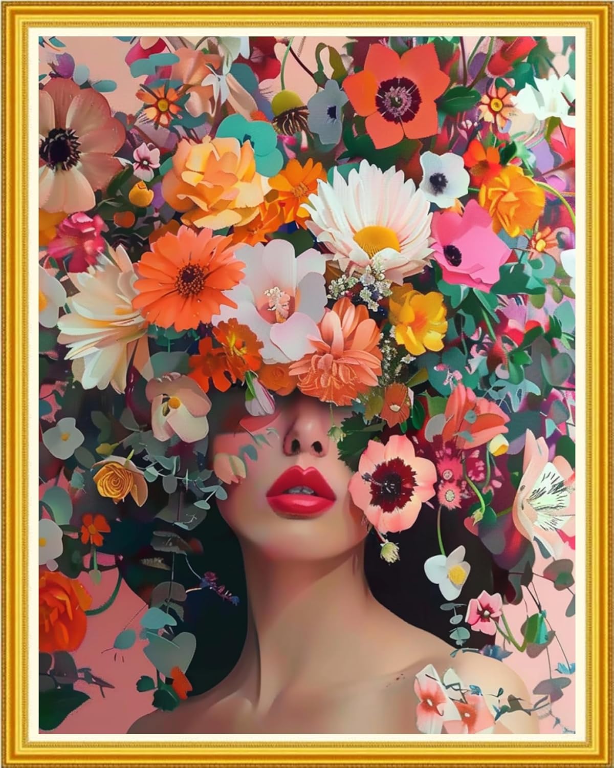 Magxvouy Cross Stitch Kits Stamped Full Range of Embroidery Kits,Cross Stitch Patterns Needlework Kits for Beginners 11CT Printed Kits&Girl Flowers 16x20 inch