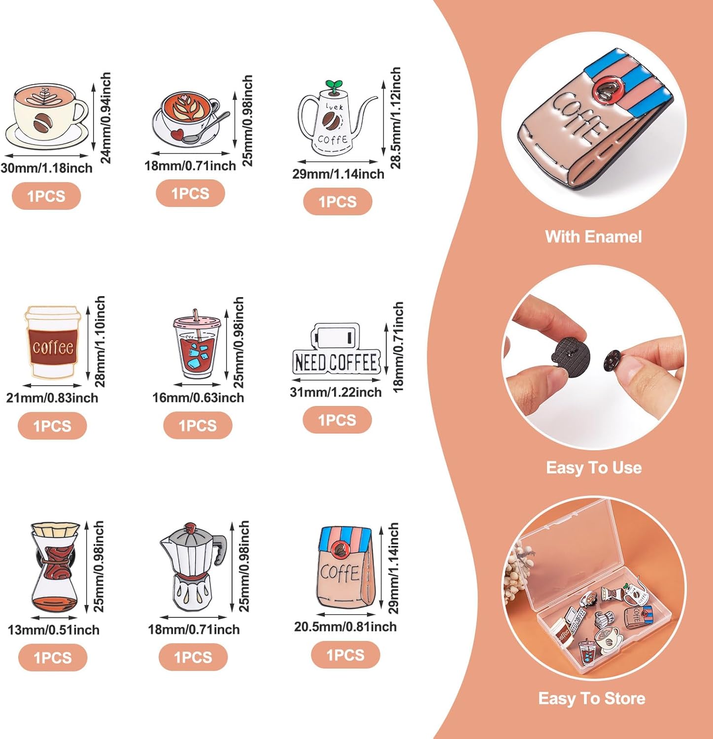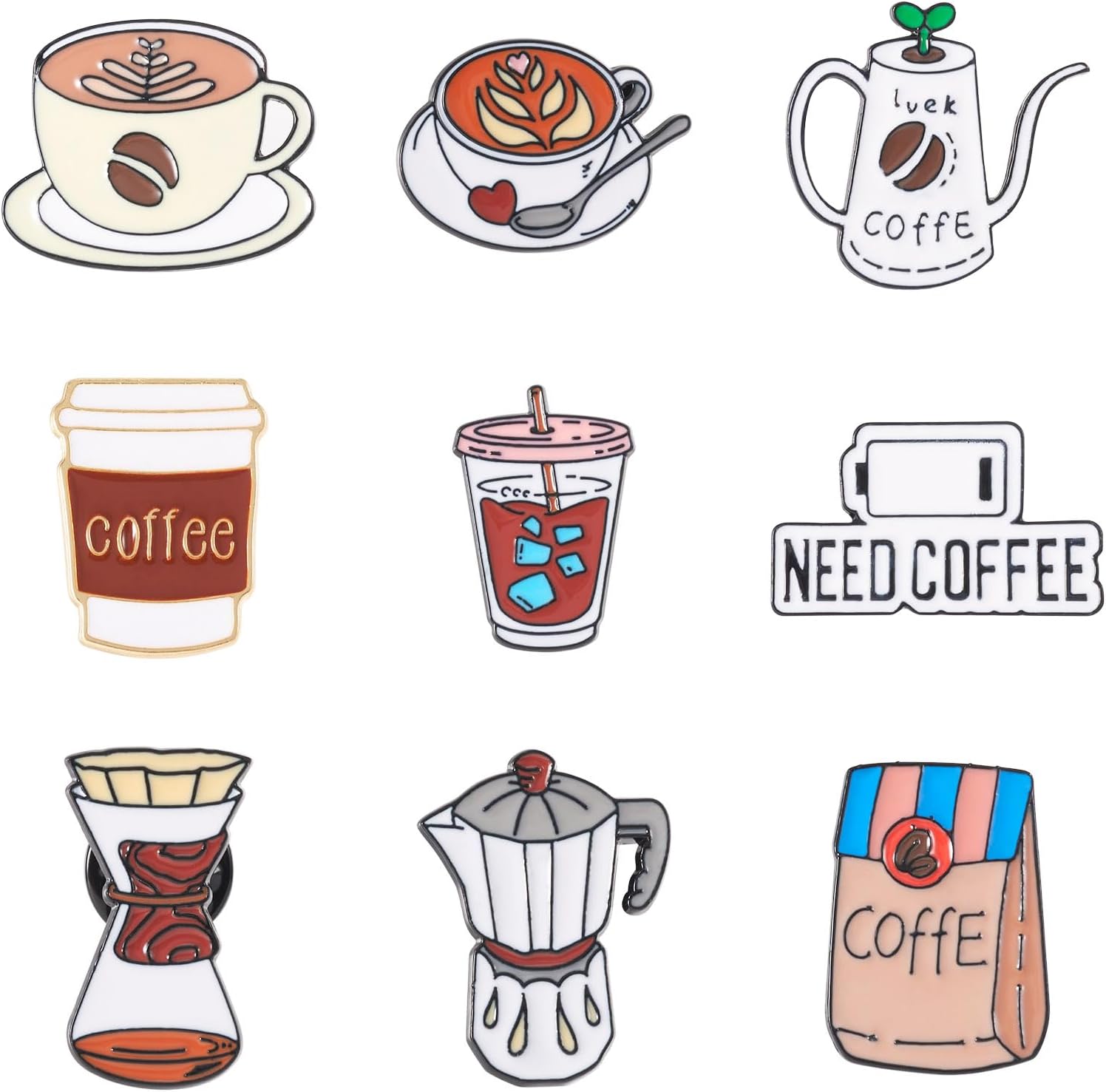 - What You Will Receive: 9pcs coffee enamel brooch pins, each pattern is artistically designs, the pins will make your clothing and backpacks more attractive and special.