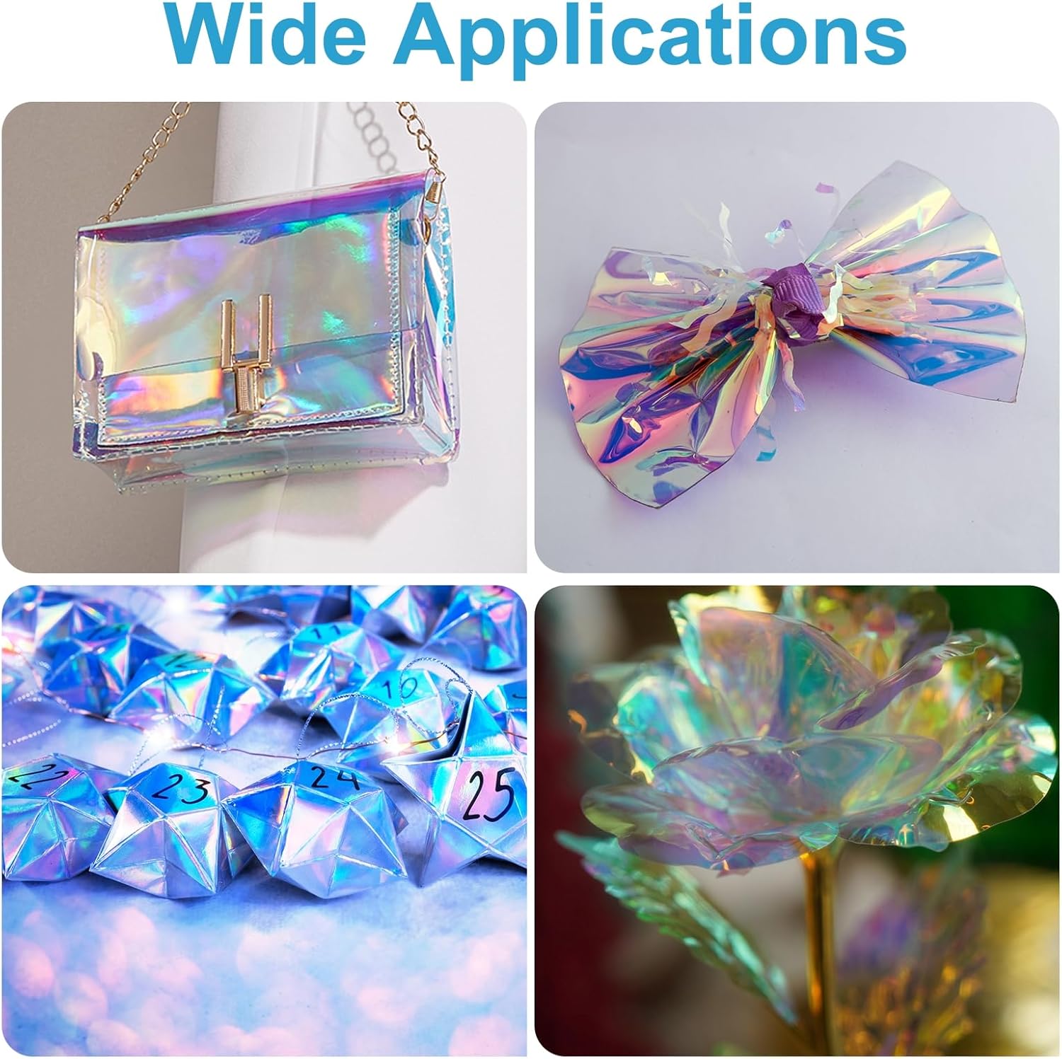 - The holographic vinyl rolls are easy to cut and can be sewn by hand or machine. They can be cut into different sizes according to your needs for use on items and crafts that need to be decorated.