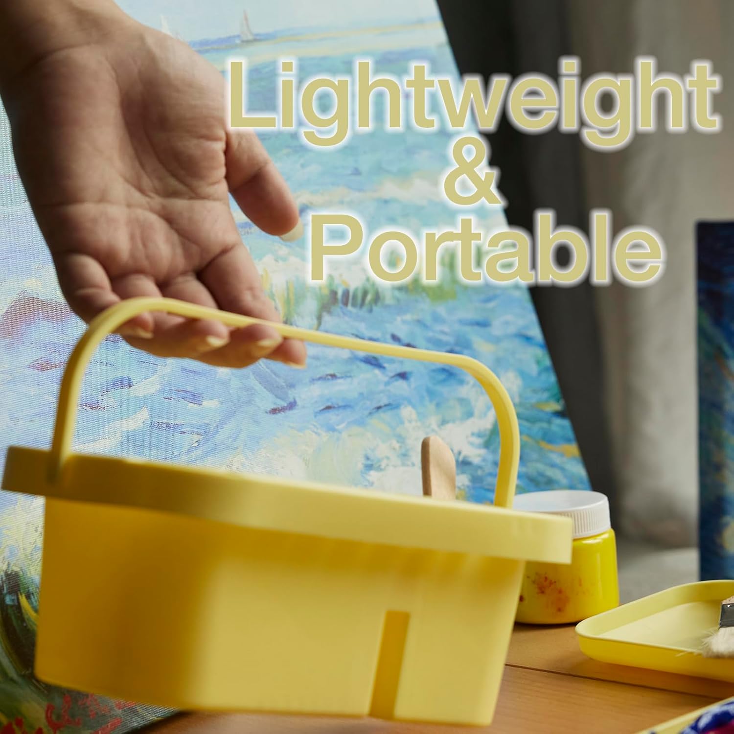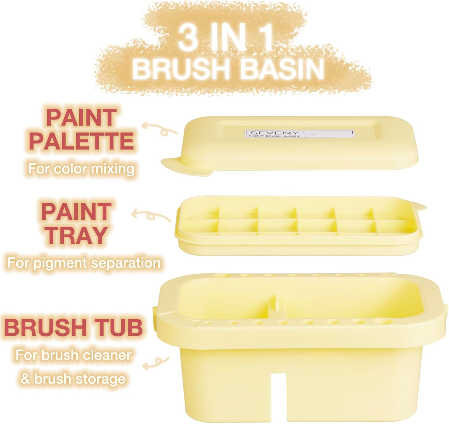 SEVENY Paint Brush Cleaner, Paint Brush Holder and Organizers with Palette for Acrylic, Watercolor, and Water-Based Paints (Yellow)