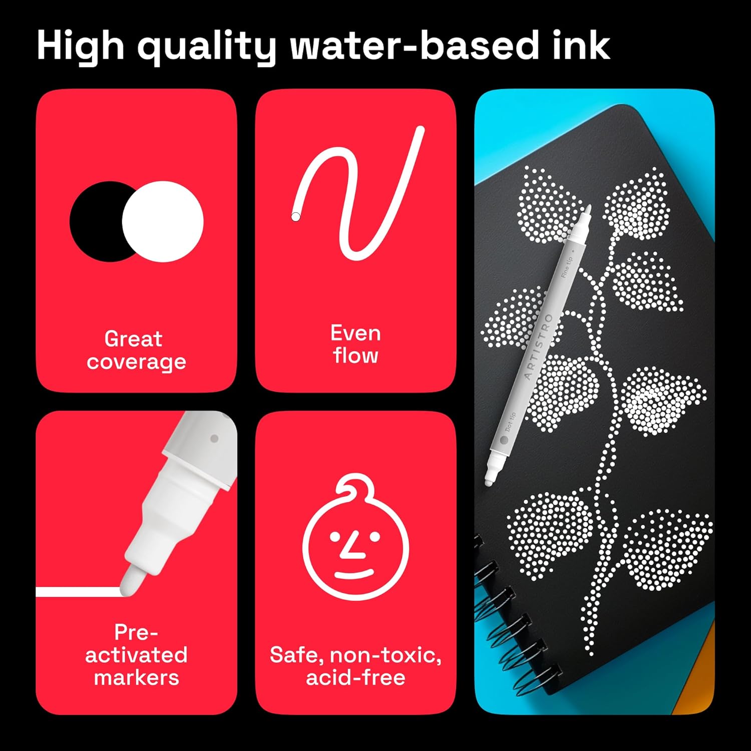 - Non-Toxic & Safe: Each paint pen conforms to ASTM D-4236 standards. Non-toxic, odorless, and safe for kids, teens, and adults. Ideal for classrooms, hobbyists, and professional artists.