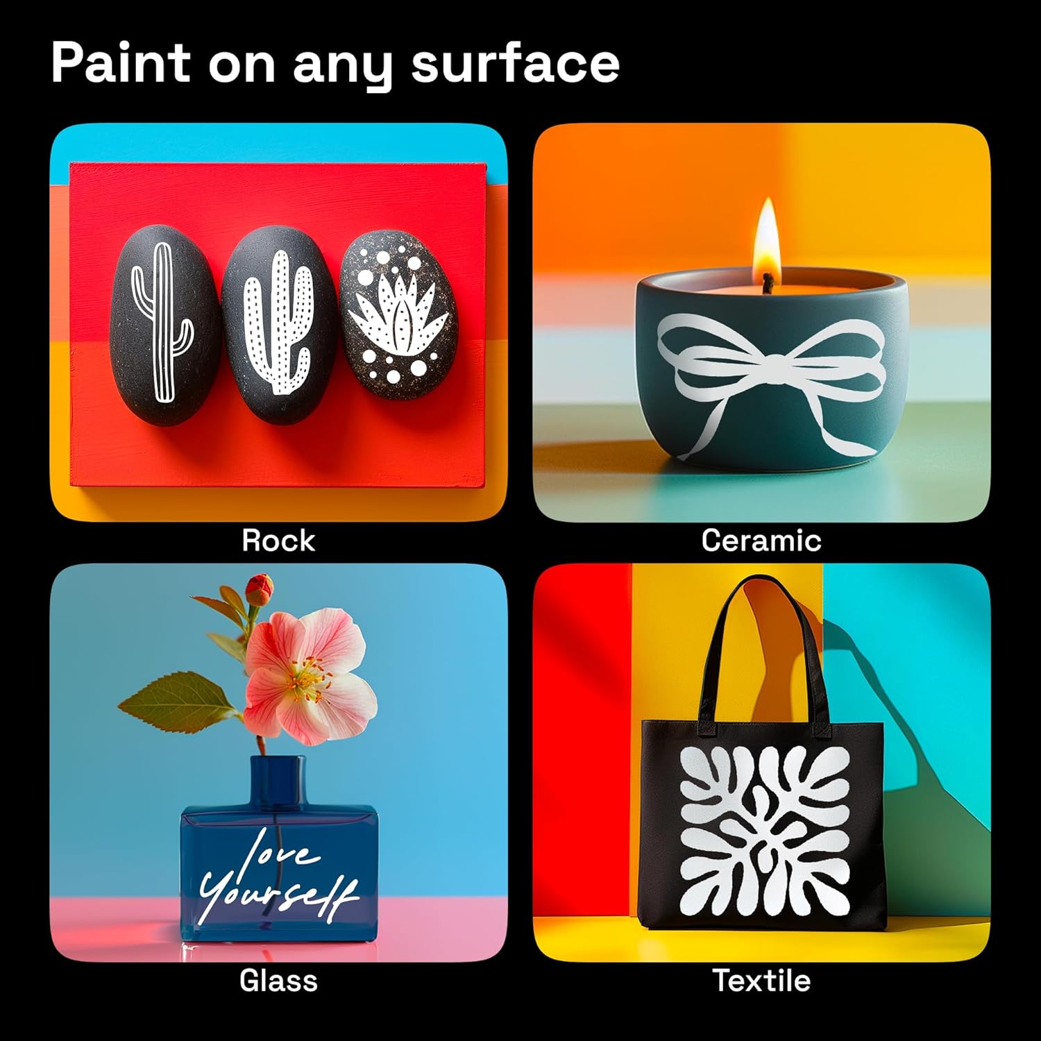 - Multi-Purpose: Use white acrylic paint pens for canvas, rock painting, glass, fabric, wood, ceramic, sneakers, plastic, pottery, and terracotta. Perfect for highlighting, outlining, fine details, or DIY projects and crafts.