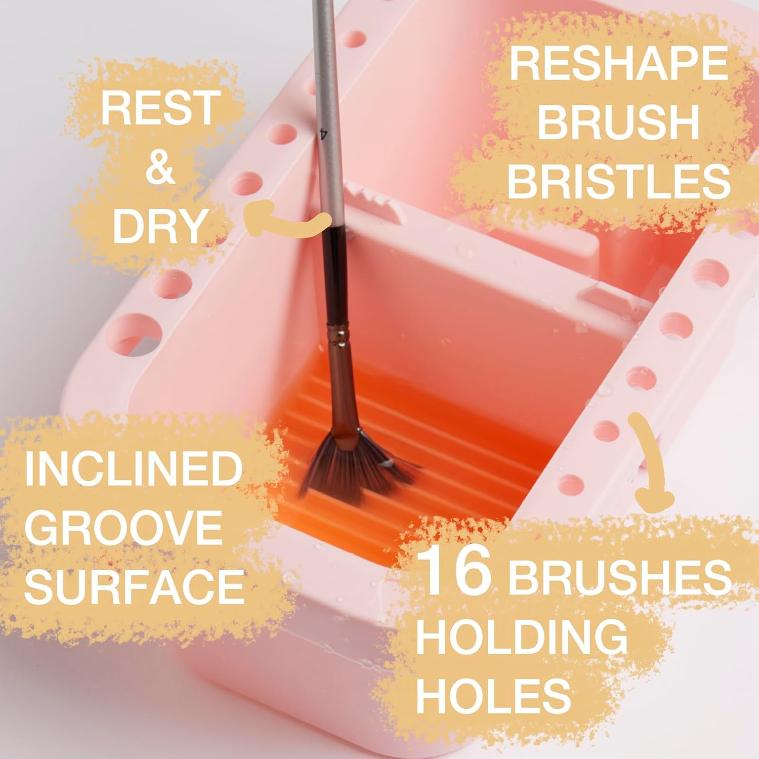 SEVENY Multifunctional Paint Brush Cleaner & Holder, Painting Accessories with handle for Acrylic, Watercolor, and Water-Based Paints(Pink)