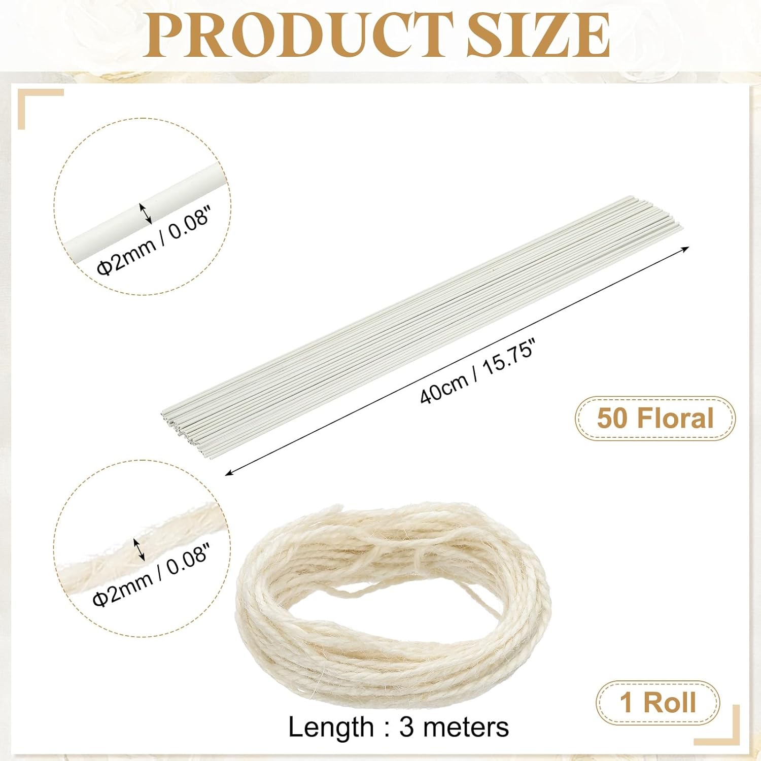 - What You Get: The package includes 50 floral wires and 1 roll of 3 meters long twine. Each floral wire is 2mm/0.08" in diameter and 40cm/15.75" long. The twine is 2mm/0.08" in diameter and has a total length of 3meters/32.8ft, which can meet various creative and gardening needs