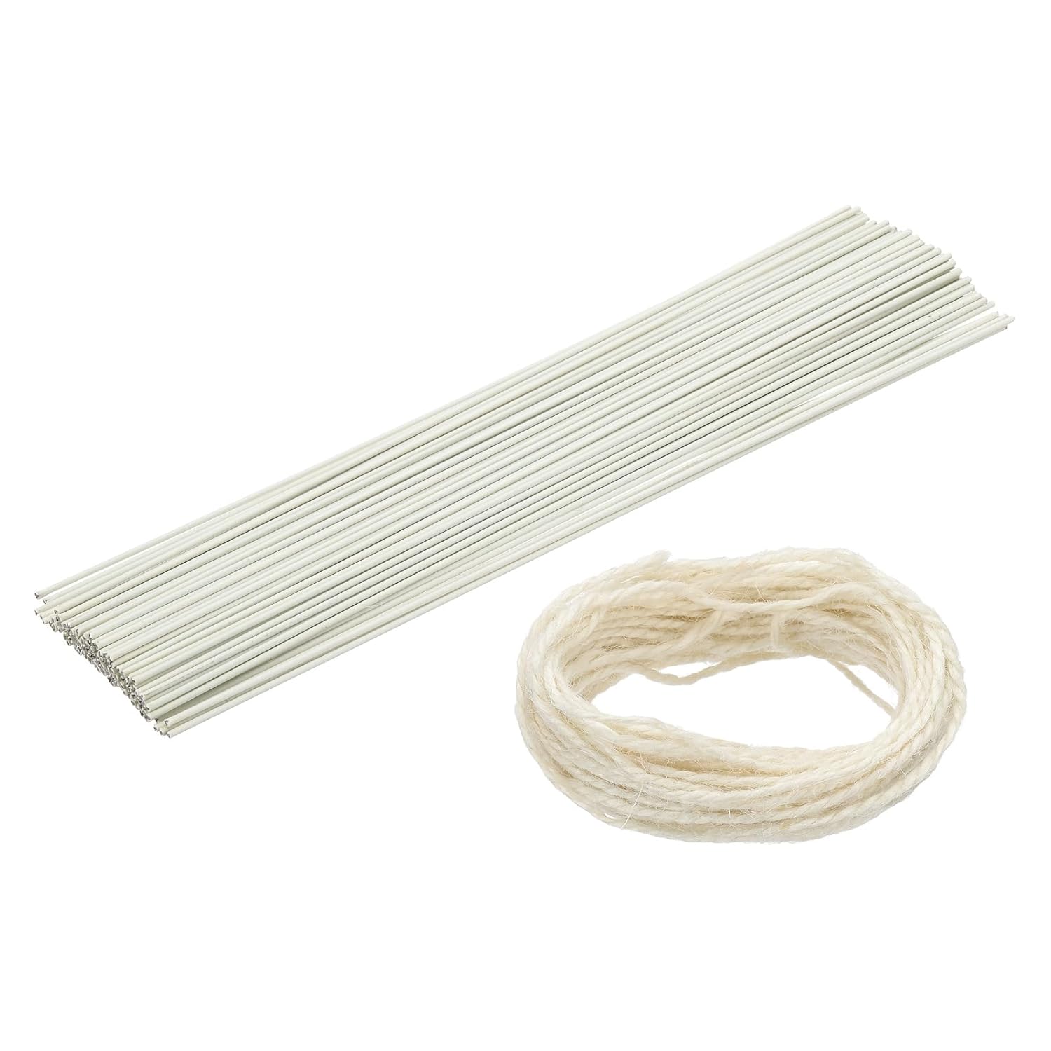 uxcell 50Pcs 2 Gauge Floral Wire, 11.81" Length Flower Stem Wires with 0.08" x 32.8ft Twine for Wreath Making, Flower Arrangement, White